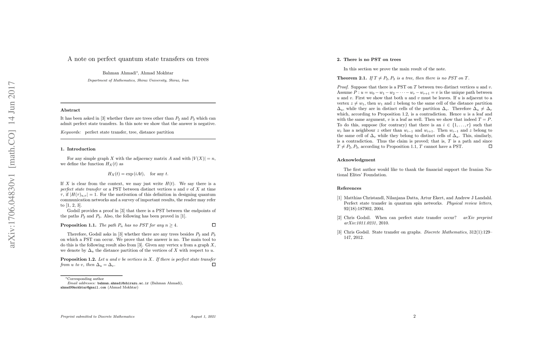 It has been asked whether there are trees other than $P_2$ and $P_3$ which can admit perfect state transfers. In this note we show that the answer is negative.