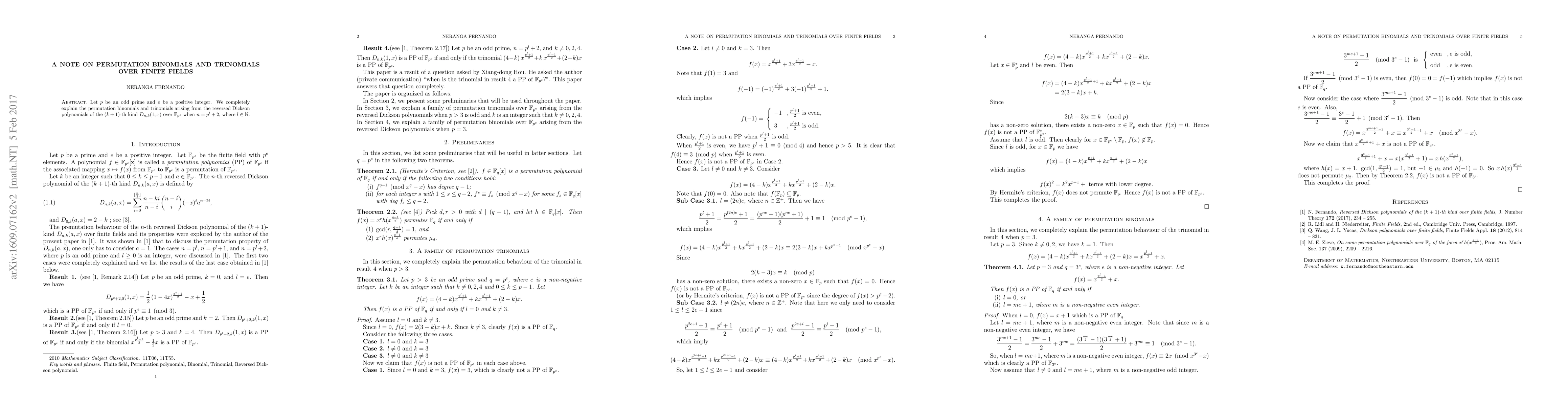 This research paper examines permutation binomials and trinomials derived from reversed Dickson polynomials of the $(k+1)$-th kind over finite fields $\mathbb{F}_{p^e}$, focusing on the specific case when $n=p^l+2$ for an odd prime $p$ and positive integer $e$.