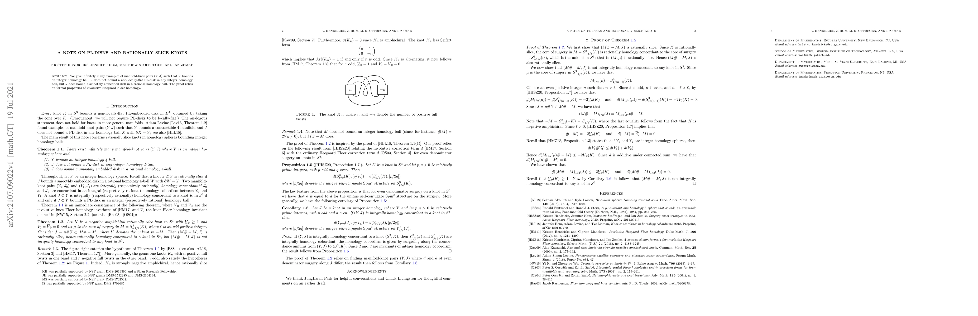 Researchers found infinitely many examples of knots that bound integer homology balls but not locally flat PL-disks, yet still have smoothly embedded disks in rational homology balls.