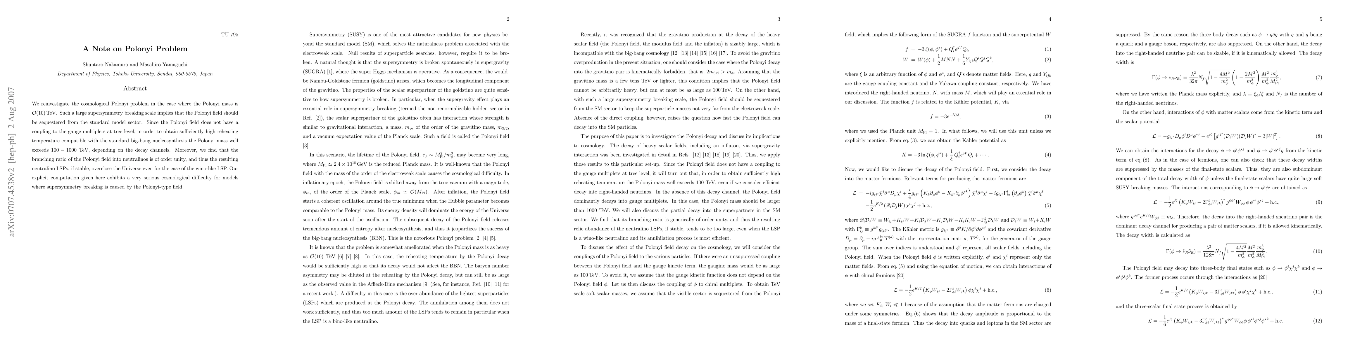 The paper presents a detailed analysis of Polonyi field decay channels and their cosmological consequences, providing a comprehensive examination of the Polonyi problem in supersymmetric models.