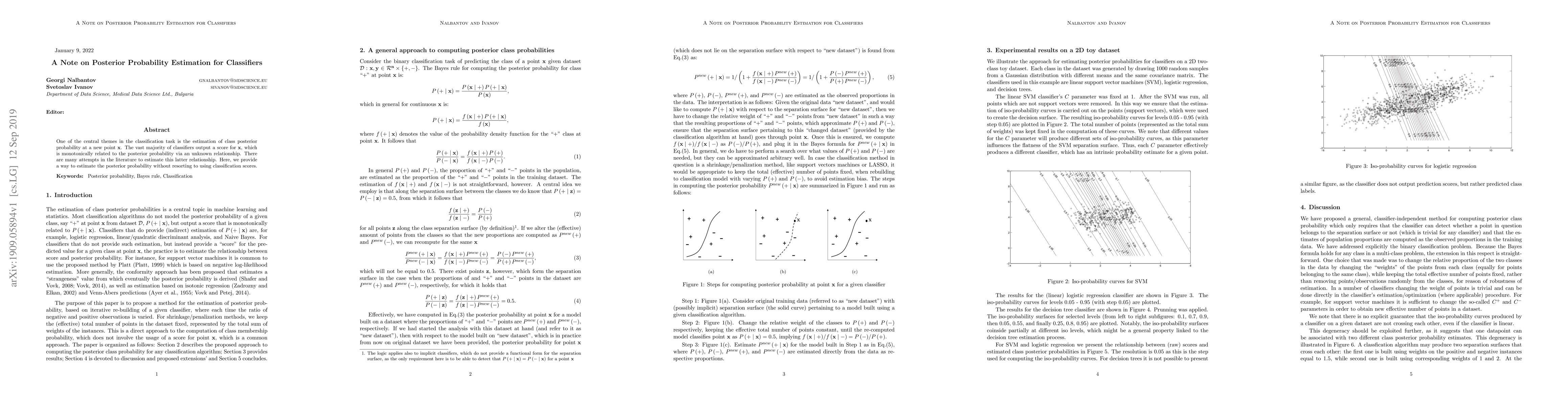 One of the central themes in the classification task is the estimation of class posterior probability at a new point $\bf{x}$. The vast majority of classifiers output a score for $\bf{x}$, which is monotonically related to the posterior probability via an unknown relationship. There are many attempts in the literature to estimate this latter relationship. Here, we provide a way to estimate the posterior probability without resorting to using classification scores. Instead, we vary the prior probabilities of classes in order to derive the ratio of pdf's at point $\bf{x}$, which is directly used to determine class posterior probabilities. We consider here the binary classification problem.