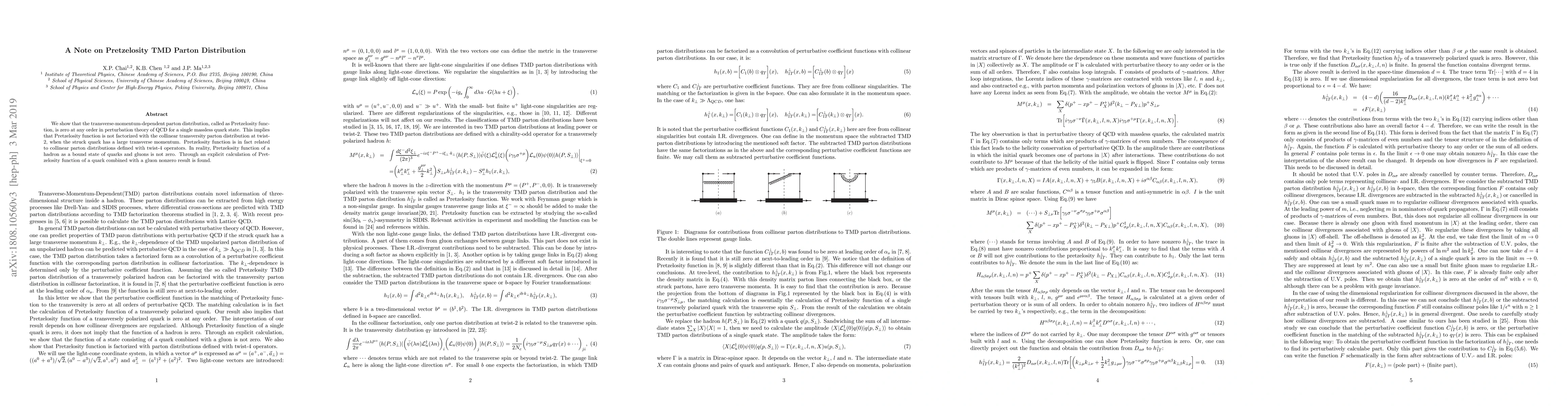 This paper demonstrates that the Pretzelosity function, a transverse-momentum-dependent parton distribution, is zero for a single massless quark state in QCD at any order in perturbation theory. It concludes that this function does not factorize with the collinear transversity distribution and is instead related to twist-4 operators, with a non-zero result found for a bound state of quarks and gluons.