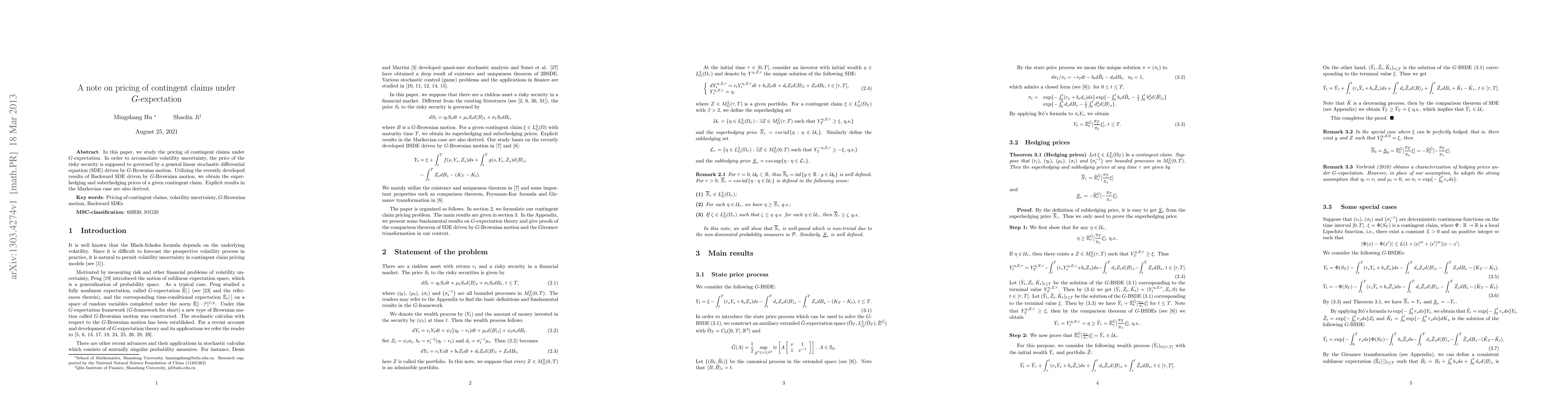 This paper explores the pricing of contingent claims using G-expectation, where the risky security's price is modeled by a general linear SDE driven by G-Brownian motion. It derives superhedging and subhedging prices leveraging Backward SDE driven by G-Brownian motion, with explicit results for the Markovian case.