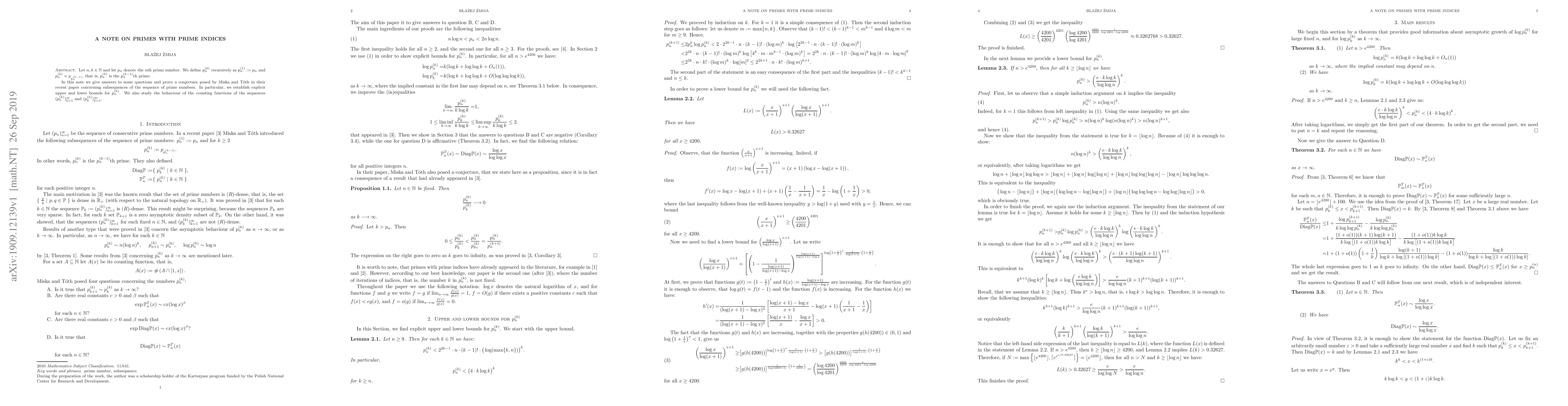 Let $n,k\in\mathbb{N}$ and let $p_{n}$ denote the $n$th prime number. We define $p_{n}^{(k)}$ recursively as $p_{n}^{(1)}:=p_{n}$ and $p_{n}^{(k)}=p_{p_{n}^{(k-1)}}$, that is, $p_{n}^{(k)}$ is the $p_{n}^{(k-1)}$th prime. In this note we give answers to some questions and prove a conjecture posed by Miska and T\'{o}th in their recent paper concerning subsequences of the sequence of prime numbers. In particular, we establish explicit upper and lower bounds for $p_{n}^{(k)}$. We also study the behaviour of the counting functions of the sequences $(p_{n}^{(k)})_{k=1}^{\infty}$ and $(p_{k}^{(k)})_{k=1}^{\infty}$.