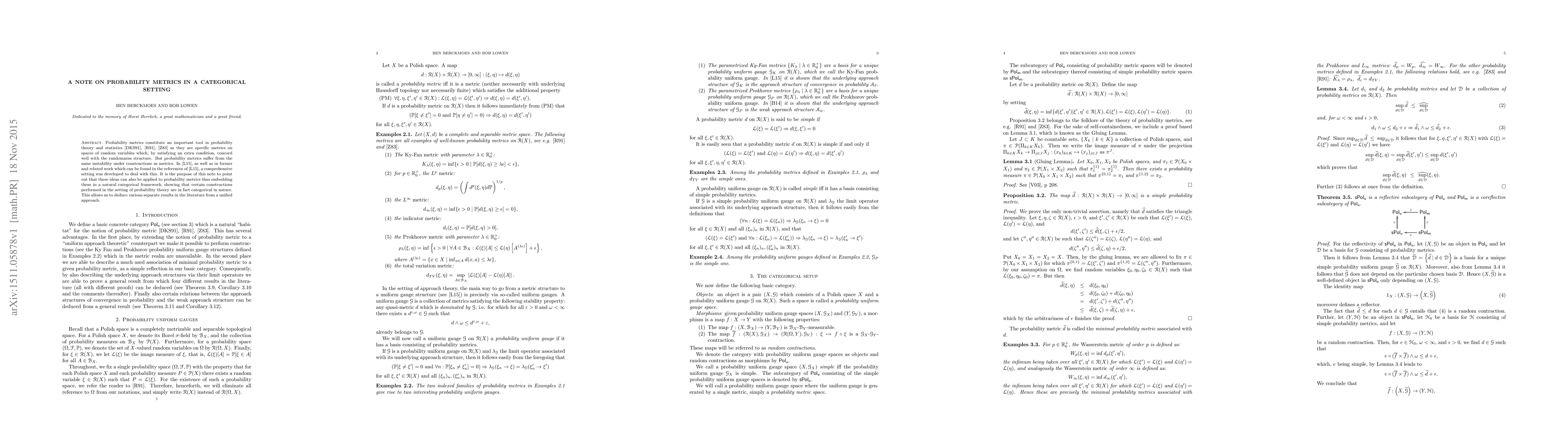 This paper explores the application of categorical frameworks to probability metrics, demonstrating that certain probability constructions are inherently categorical. It aims to unify various results in the literature by embedding probability metrics within a natural categorical setting.