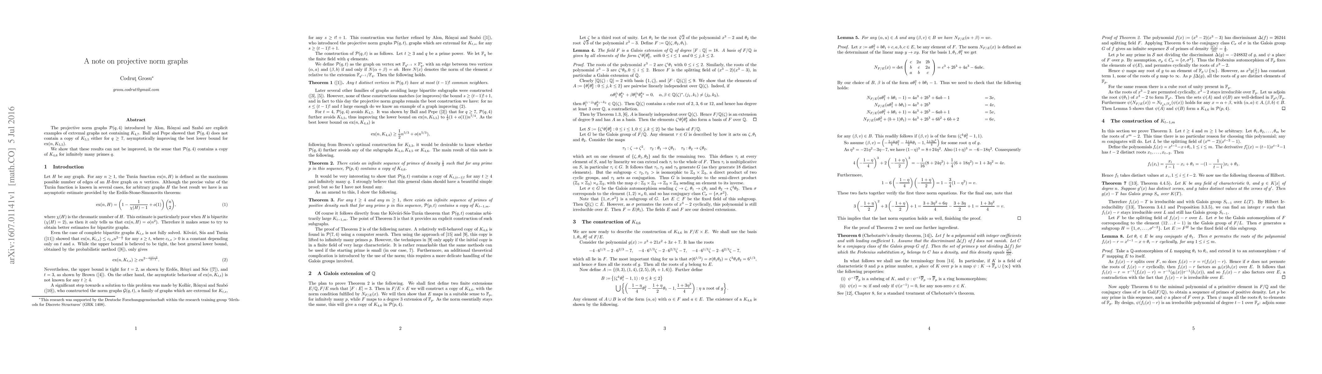 Researchers prove that projective norm graphs P(q, 4) contain a copy of K_4,6 for infinitely many primes q, contradicting previous claims they couldn't be improved.