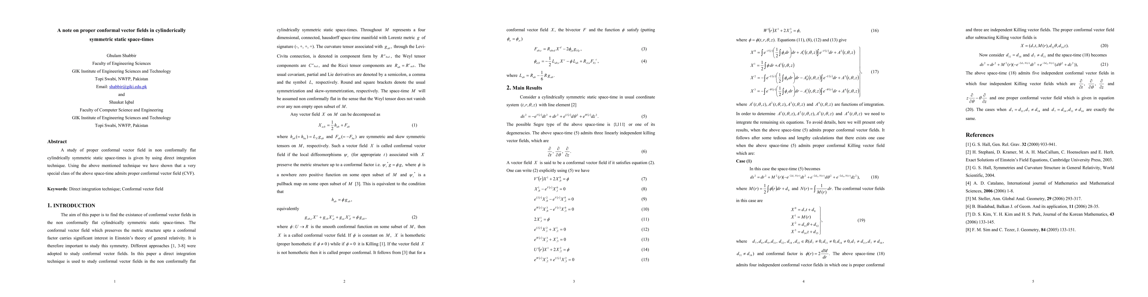 Summary: This paper investigates proper conformal vector fields in cylindrically symmetric static space-times, demonstrating through direct integration that a specific subclass of these space-times supports such vector fields.