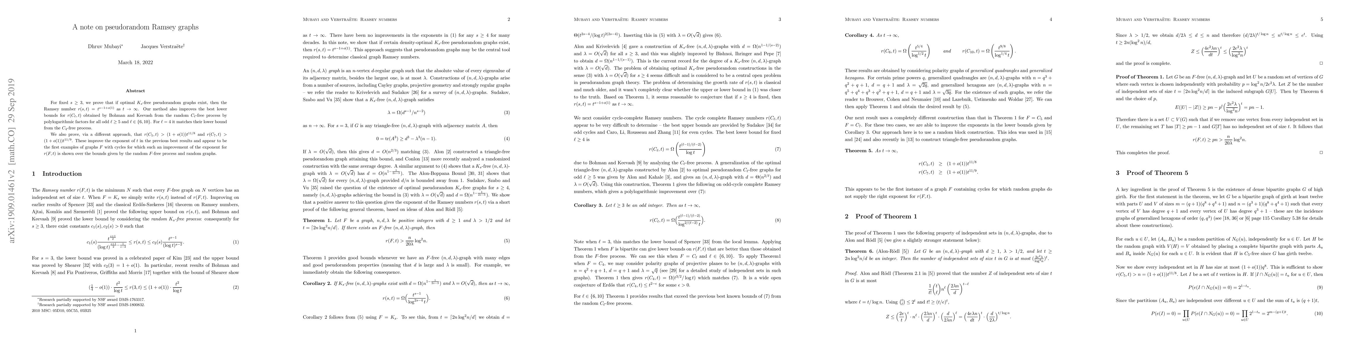 Researchers prove that if optimal pseudorandom Ramsey graphs exist for certain cycles, then the Ramsey number grows faster than previously thought as the graph size increases.