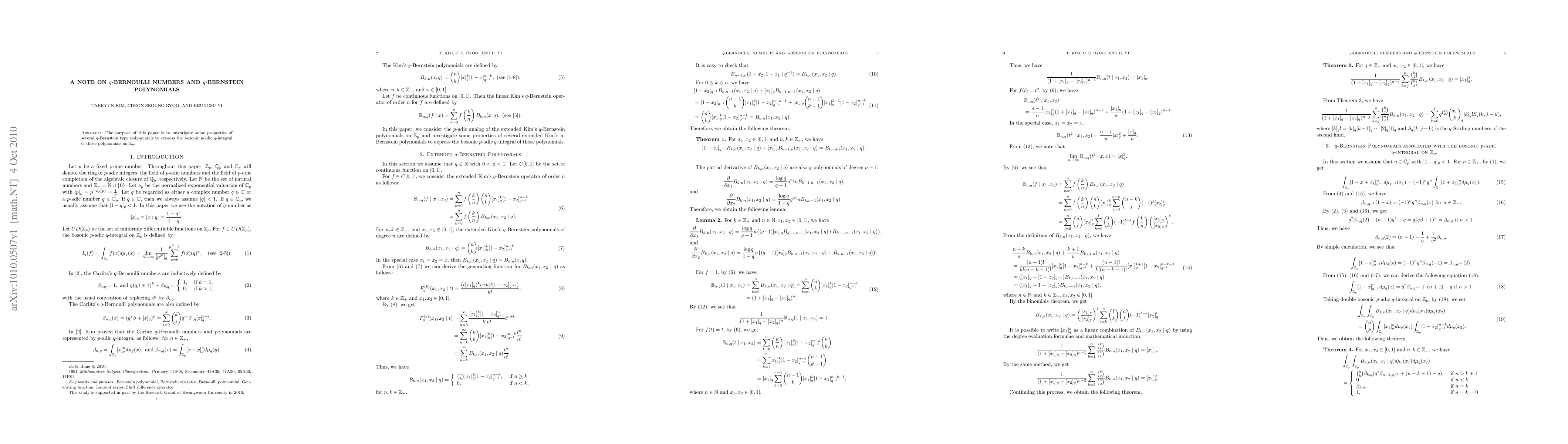 Summary: This paper explores extended q-Bernoulli numbers and investigates properties of the associated extended q-Bernstein polynomials, originally constructed by T. Kim. The study focuses on the mathematical characteristics and implications of these constructs.