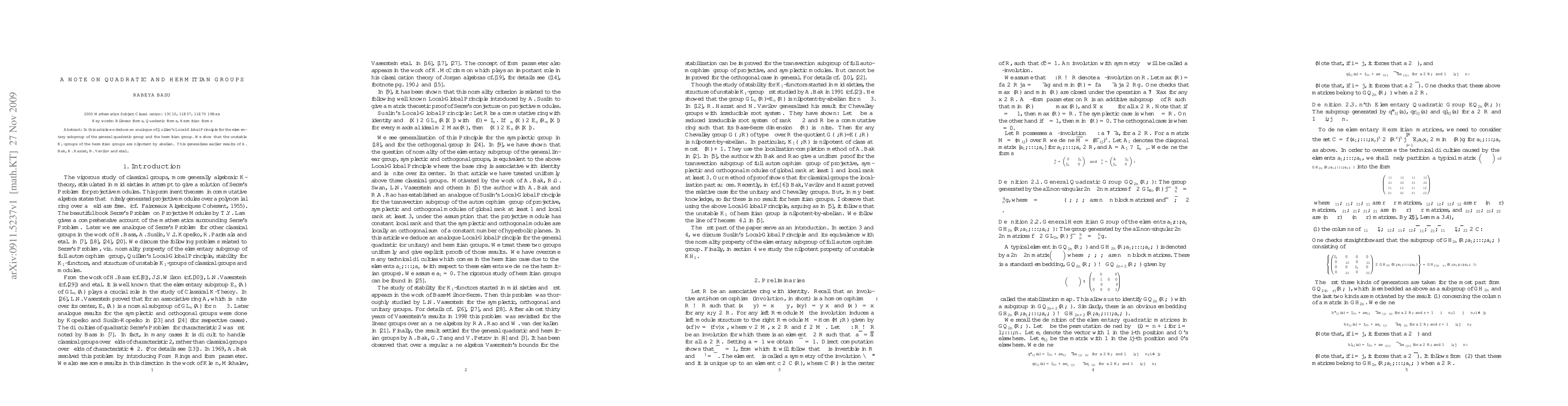 In this article we deduce an analogue of Quillen's Local-Global Principle for the elementary subgroup of the general quadratic group and the hermitian group. We show that the unstable K_1-groups of the hermitian groups are nilpotent by abelian. This generalizes earlier results of A. Bak, R. Hazrat, N. Vavilov and etal..