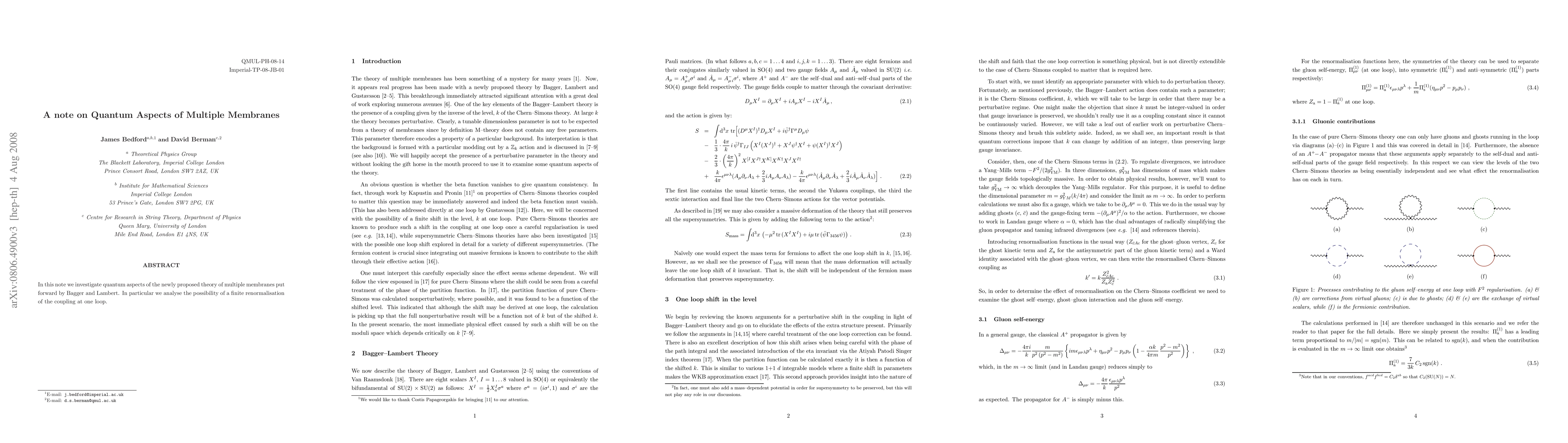 In this note we investigate quantum aspects of the newly proposed theory of multiple membranes put forward by Bagger and Lambert. In particular we analyse the possibility of a finite renormalisation of the coupling at one loop.