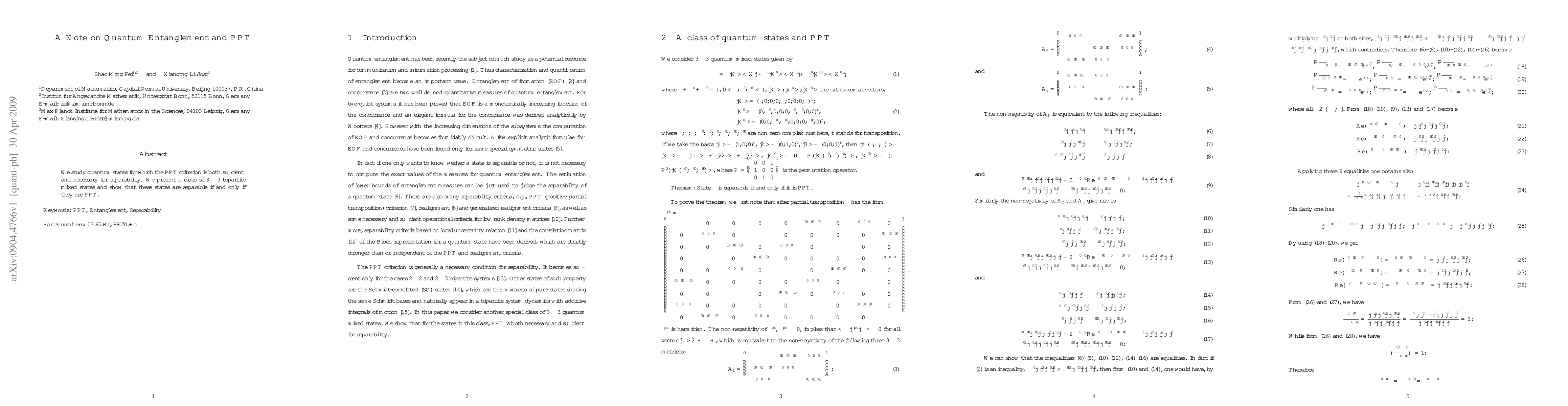 We study quantum states for which the PPT criterion is both sufficient and necessary for separability. We present a class of 3x3 bipartite mixed states and show that these states are separable if and only if they are PPT.