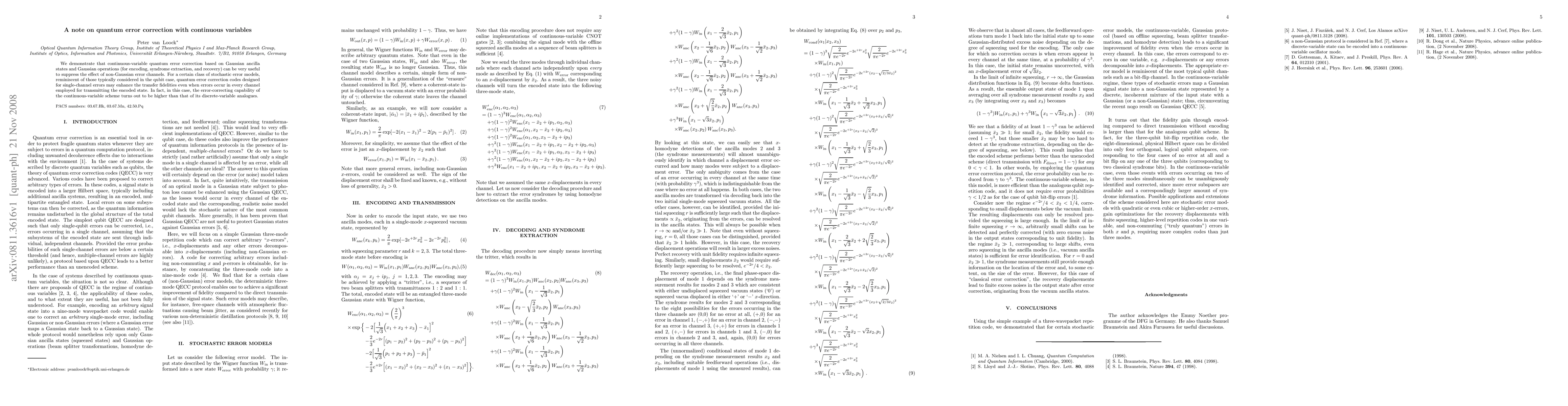 This paper shows that continuous-variable quantum error correction using Gaussian ancilla states and operations can effectively mitigate non-Gaussian errors. For specific stochastic error models, continuous-variable codes designed for single-channel errors can enhance transfer fidelity even when errors occur across all channels, outperforming discrete-variable analogues.