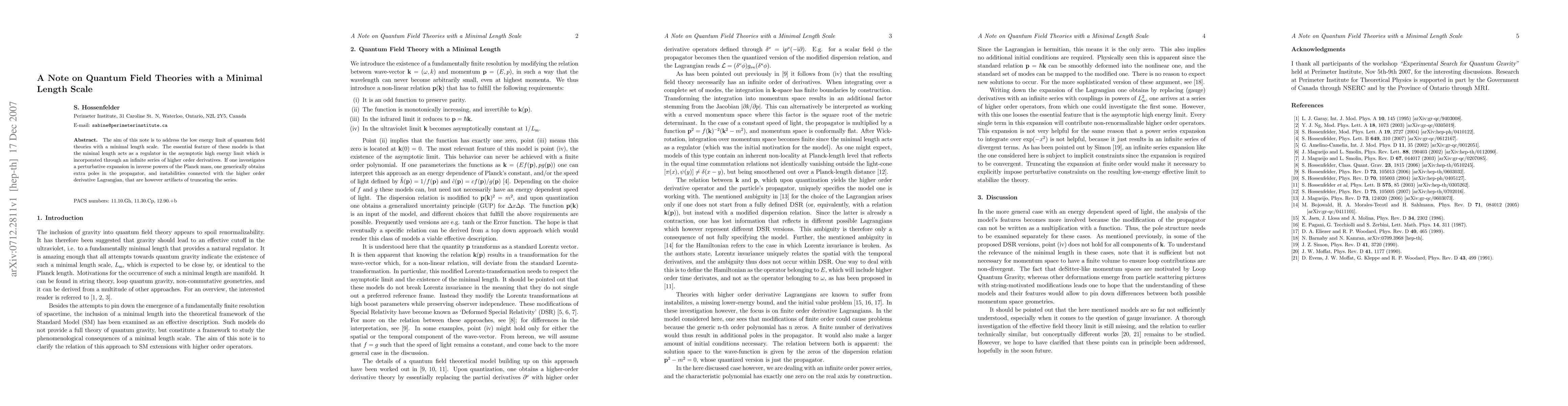 The aim of this note is to address the low energy limit of quantum field theories with a minimal length scale. The essential feature of these models is that the minimal length acts as a regulator in the asymptotic high energy limit which is incorporated through an infinite series of higher order derivatives. If one investigates a perturbative expansion in inverse powers of the Planck mass, one generically obtains extra poles in the propagator, and instabilities connected with the higher order derivative Lagrangian, that are however artifacts of truncating the series.
