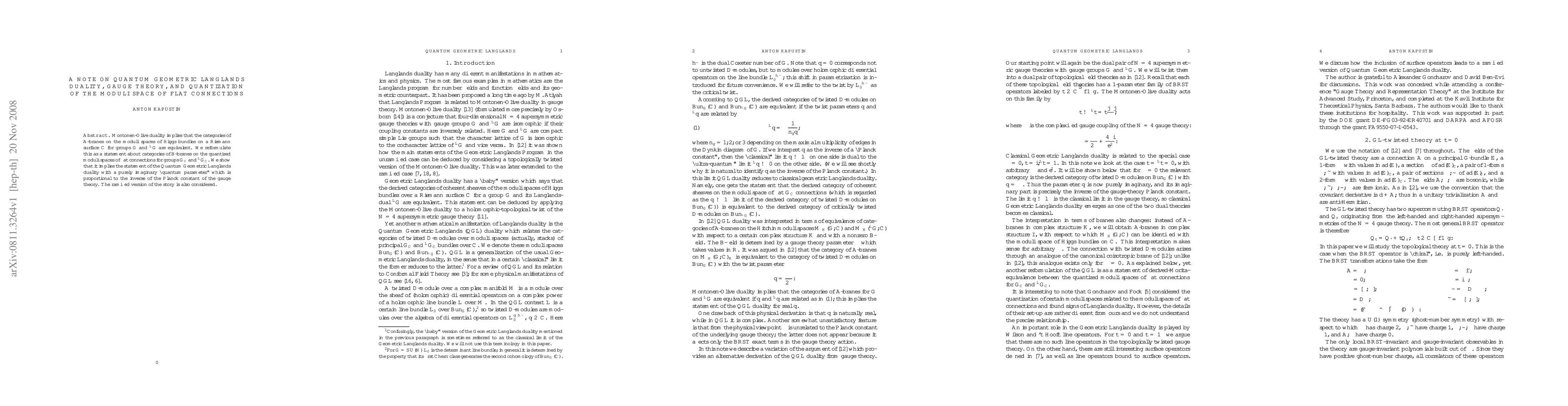 Summary: This research reformulates Montonen-Olive duality to establish Quantum Geometric Langlands duality through the equivalence of B-branes on quantized moduli spaces of flat connections, with a "quantum parameter" related to the inverse Planck constant, and extends this to a ramified version.