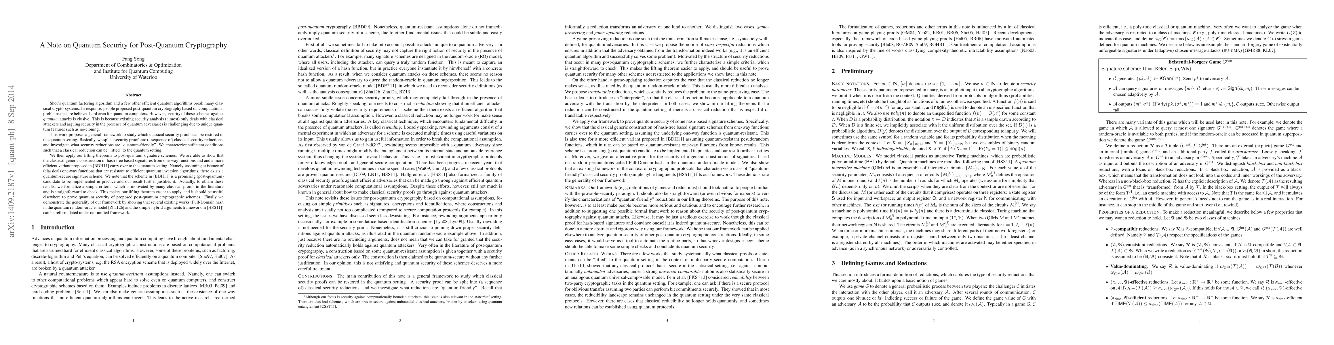 This paper proposes a framework to analyze the security of post-quantum cryptographic schemes against quantum attacks, focusing on lifting classical security proofs to the quantum setting. It demonstrates that certain hash-tree based signature schemes remain secure under quantum adversaries, thus supporting their practical viability.