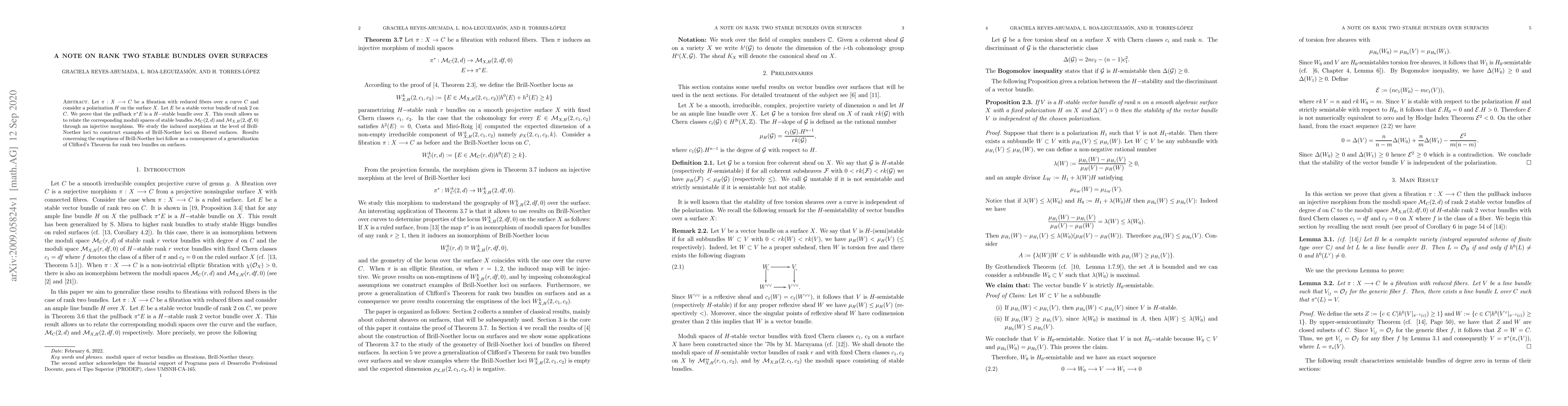 A study on stable bundles over surfaces proves that pulling a rank 2 bundle over a curve results in a stable bundle over the surface with a specific polarization, allowing for connections between moduli spaces.