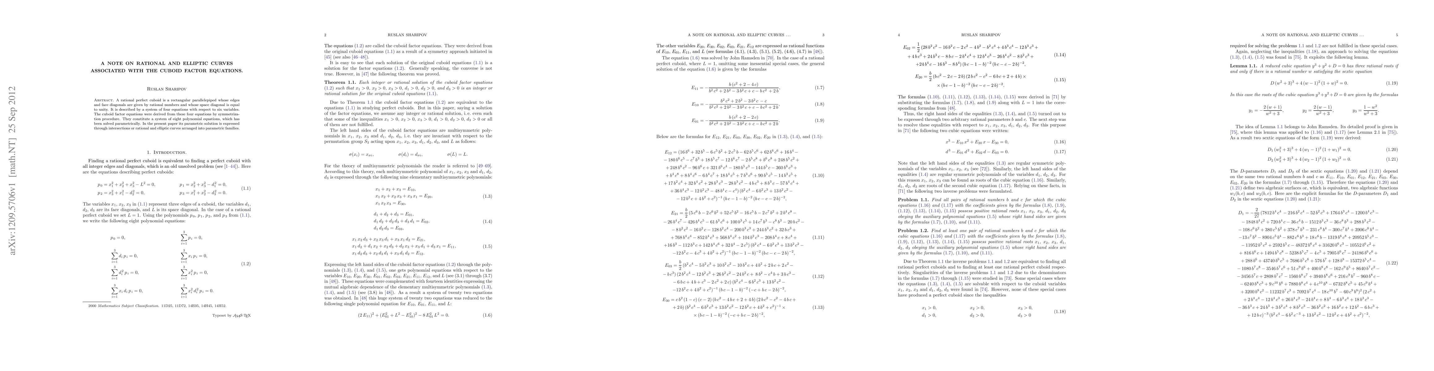 A rational perfect cuboid is a rectangular parallelepiped whose edges and face diagonals are given by rational numbers and whose space diagonal is equal to unity. It is described by a system of four equations with respect to six variables. The cuboid factor equations were derived from these four equations by symmetrization procedure. They constitute a system of eight polynomial equations, which has been solved parametrically. In the present paper its parametric solution is expressed through intersections or rational and elliptic curves arranged into parametric families.