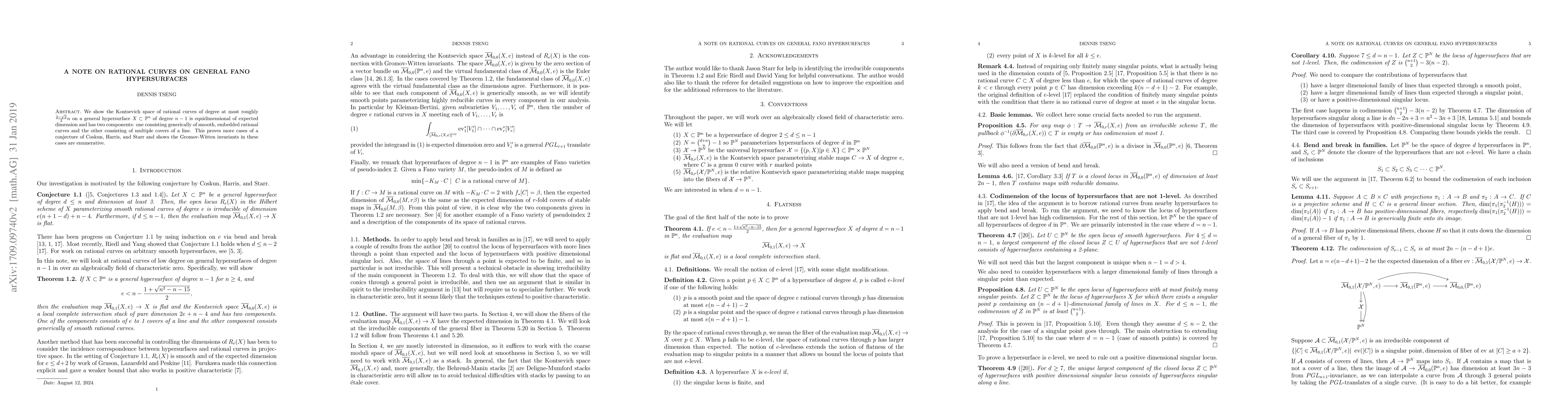 This paper investigates rational curves on general Fano hypersurfaces, proving a conjecture in several cases while showing Gromov-Witten invariants are enumerative.