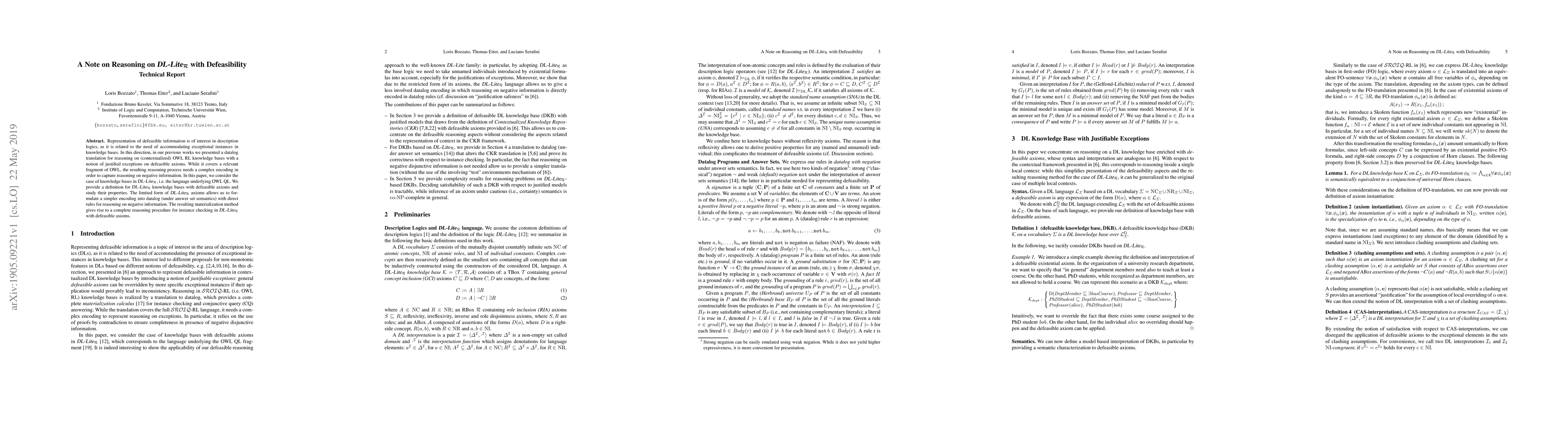 This paper introduces a method for reasoning on $\textit{DL-Lite}_{\cal R}$ knowledge bases with defeasible axioms, providing a simpler datalog encoding under answer set semantics that directly handles negative information. The proposed materialization method results in a complete procedure for instance checking in $\textit{DL-Lite}_{\cal R}$ with defeasible axioms.