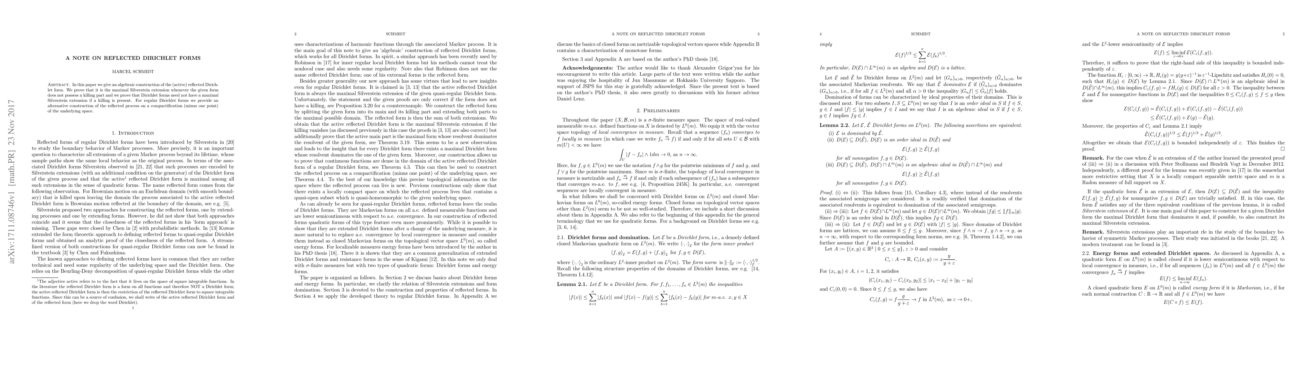 In this paper we give an algebraic construction of the (active) reflected Dirich- let form. We prove that it is the maximal Silverstein extension whenever the given form does not possess a killing part and we prove that Dirichlet forms need not have a maximal Silverstein extension if a killing is present. For regular Dirichlet forms we provide an alternative construction of the reflected process on a compactification (minus one point) of the underlying space.