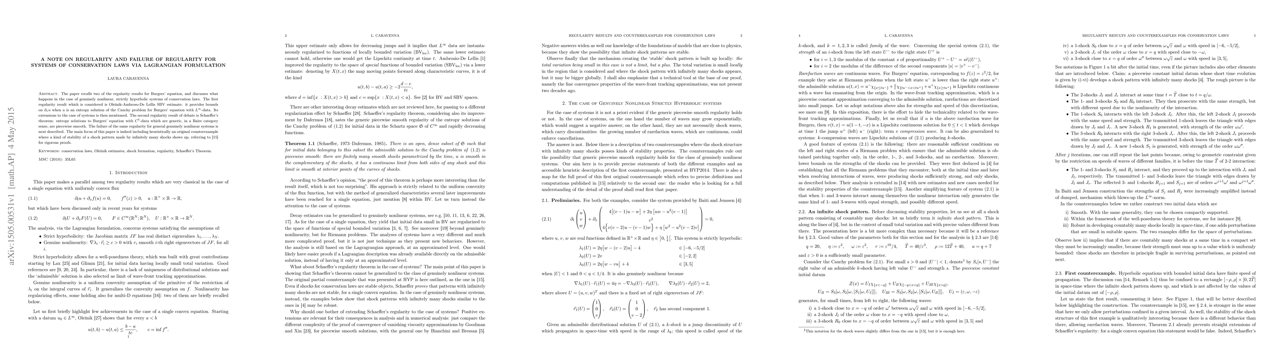 This paper reviews two key regularity results for Burgers' equation and discusses their failure in genuinely nonlinear, strictly hyperbolic conservation laws. It highlights the Oleinik-Ambroso-De Lellis SBV estimate and Schaeffer's theorem, and introduces a heuristic counterexample illustrating stability of shock patterns with infinitely many shocks.