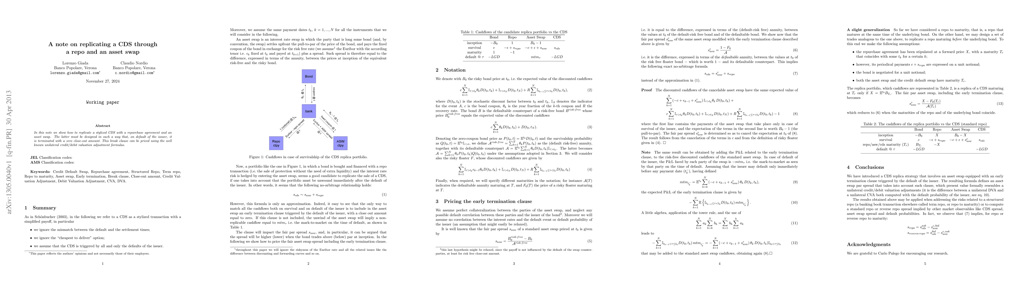 In this note we show how to replicate a stylized CDS with a repurchase agreement and an asset swap. The latter must be designed in such a way that, on default of the issuer, it is terminated with a zero close-out amount. This break clause can be priced using the well known unilateral credit/debit valuation adjustment formulas.