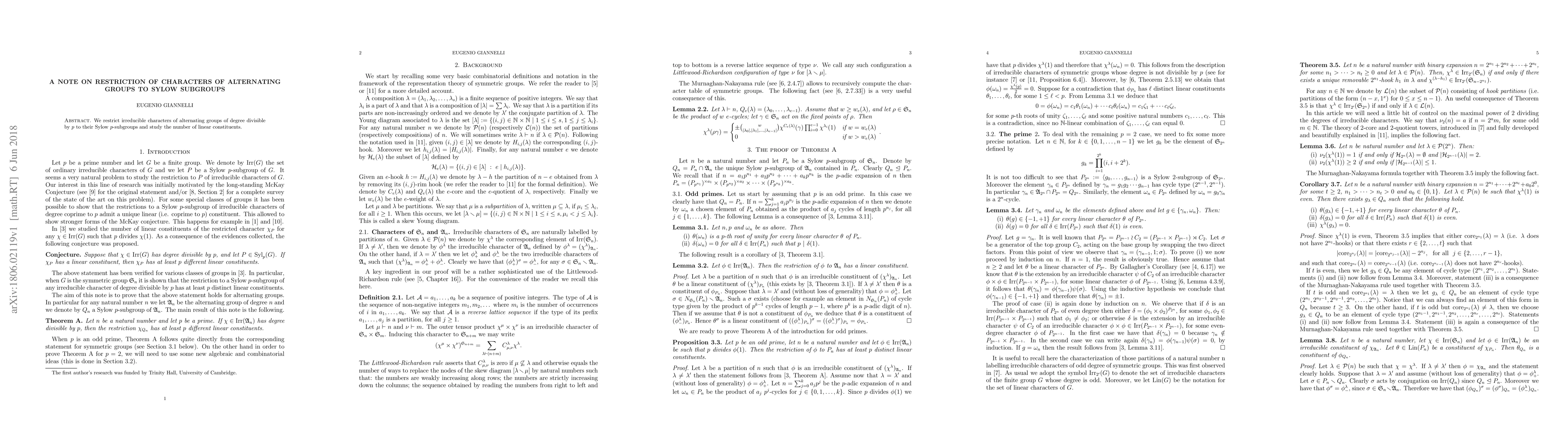 Summary: This paper investigates the restriction of irreducible characters of alternating groups to Sylow $p$-subgroups when the group degree is divisible by $p$, focusing on the count of linear constituents in these restrictions.