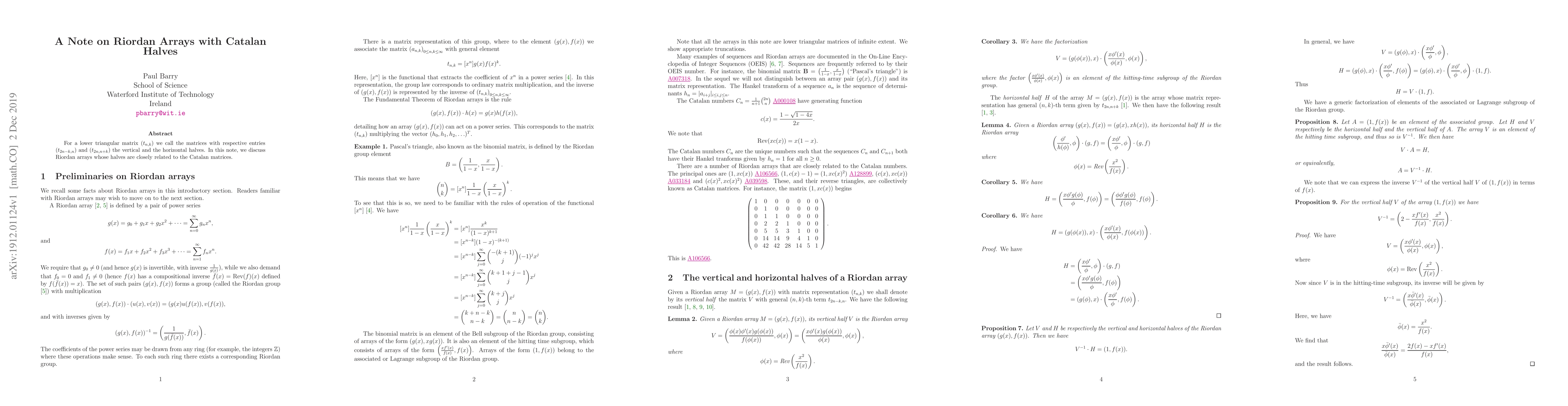 The paper discusses Riordan arrays whose halves are closely related to the Catalan matrices, focusing on vertical and horizontal halves and their properties.