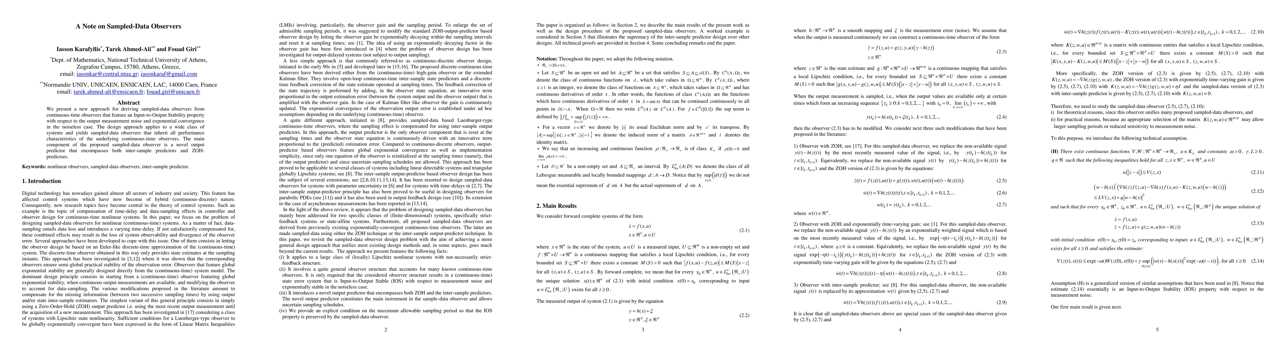 This paper introduces a novel method for designing sampled-data observers from continuous-time observers, ensuring Input-to-Output Stability and exponential convergence. The proposed approach yields observers that retain the performance of their continuous-time counterparts, featuring a new output predictor combining inter-sample and ZOH-predictors.