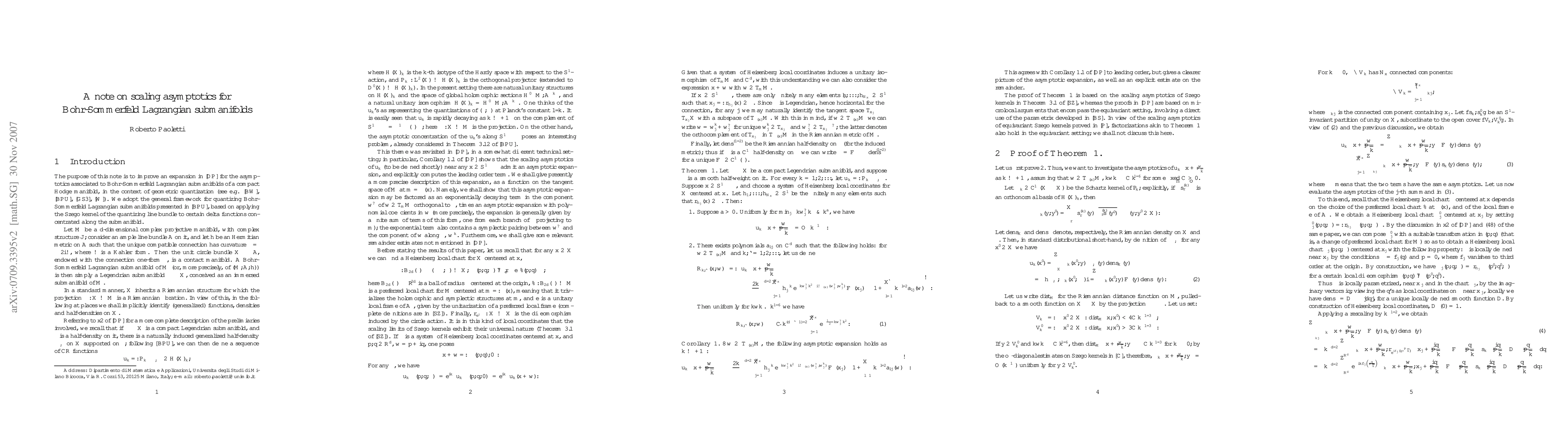 An important problem in geometric quantization is that of quantizing certain classes of Lagrangian submanifolds, so-called Bohr-Sommerfeld Lagrangian submanifolds, equipped with a smooth half-density. A procedure for this in the complex projective setting is, roughly speaking, to apply the Szego kernel of the quantizing line bundle to a certain induced delta function supported on the submanifold. If the quantizing line bundle L is replaced by its k-th tensor power, and k tends to infinity, the resulting quantum states u_k concentrate asymptotically on the submanifold. This note deals with the scaling asymptotics of the u_k's along the submanifold; in particular, we point out a natural factorization in the corresponding asymptotic expansion, and provide some remainder estimates.