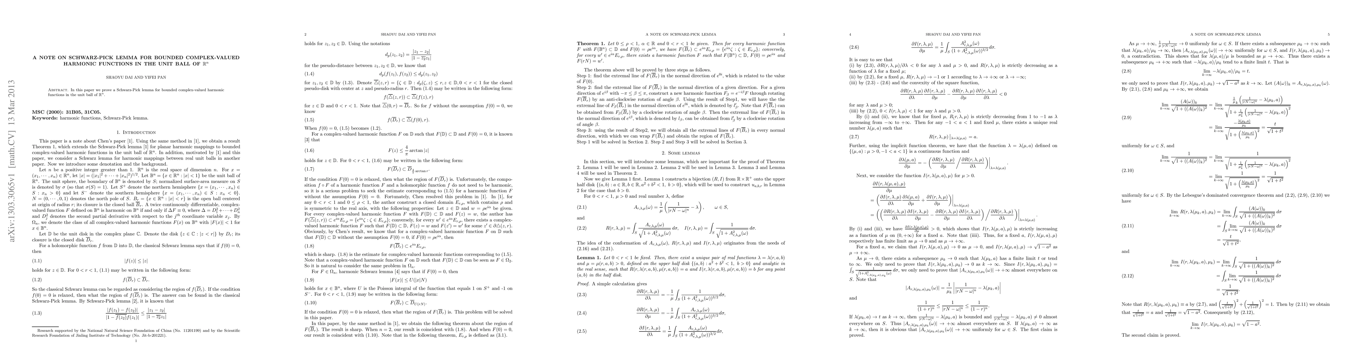 Summary: This paper establishes a Schwarz-Pick lemma for bounded complex-valued harmonic functions within the unit ball of R^n, extending the classical lemma to a more generalized harmonic setting.
