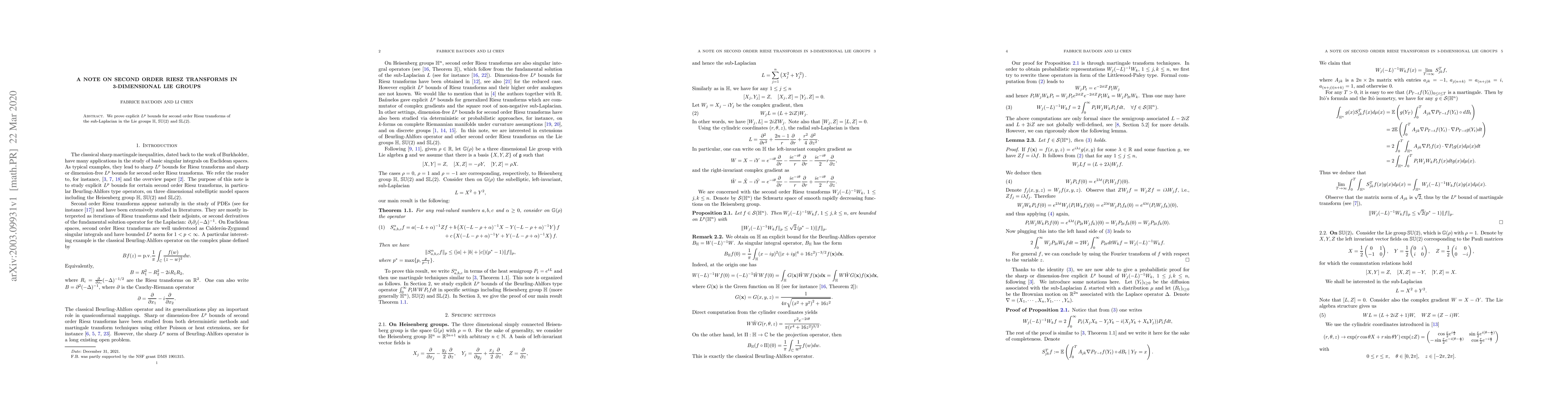 We prove explicit $L^p$ bounds for second order Riesz transforms of the sub-Laplacian in the Lie groups $\mathbb H$, $\mathbb{SU}(2)$ and $\mathbb{SL}(2)$