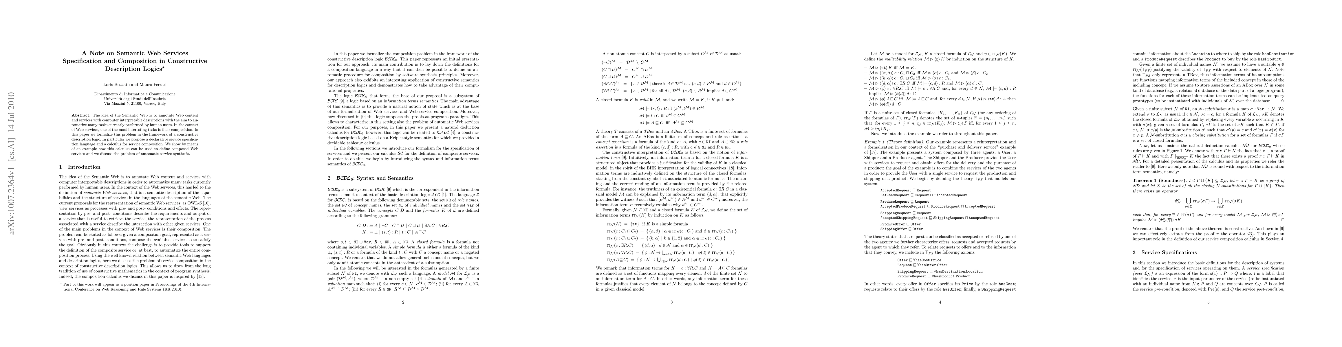 This paper proposes a declarative language and calculus for specifying and composing Semantic Web services within constructive description logics, demonstrating their application through an example and discussing the potential for automatic service synthesis.