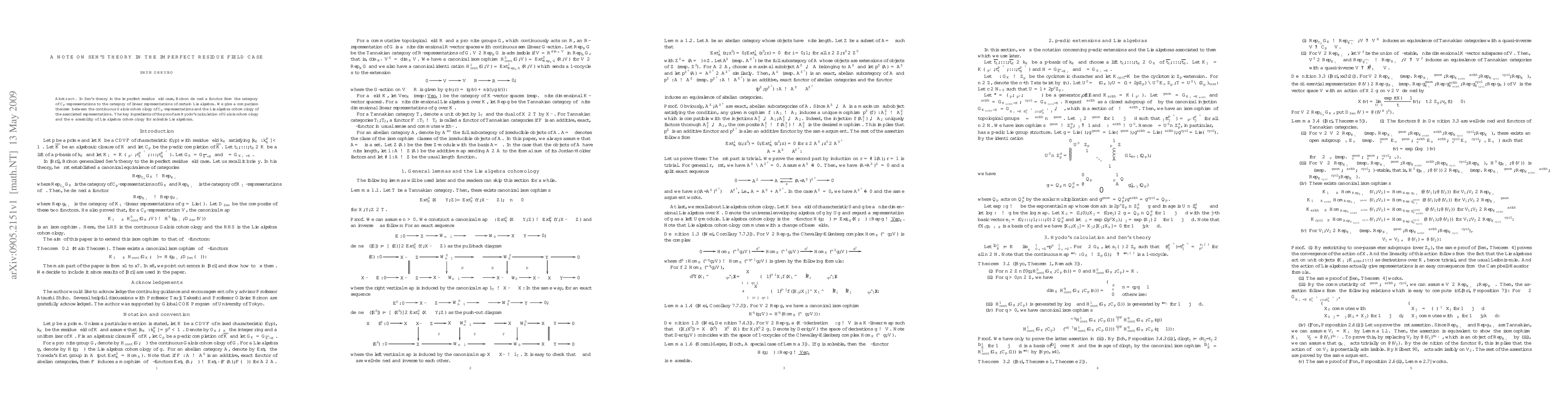 This paper compares continuous Galois cohomology of C_p-representations with Lie algebra cohomology of associated representations in Sen's theory for imperfect residue fields, using Hyodo's Galois cohomology calculations and the effaceability of solvable Lie algebra cohomology.