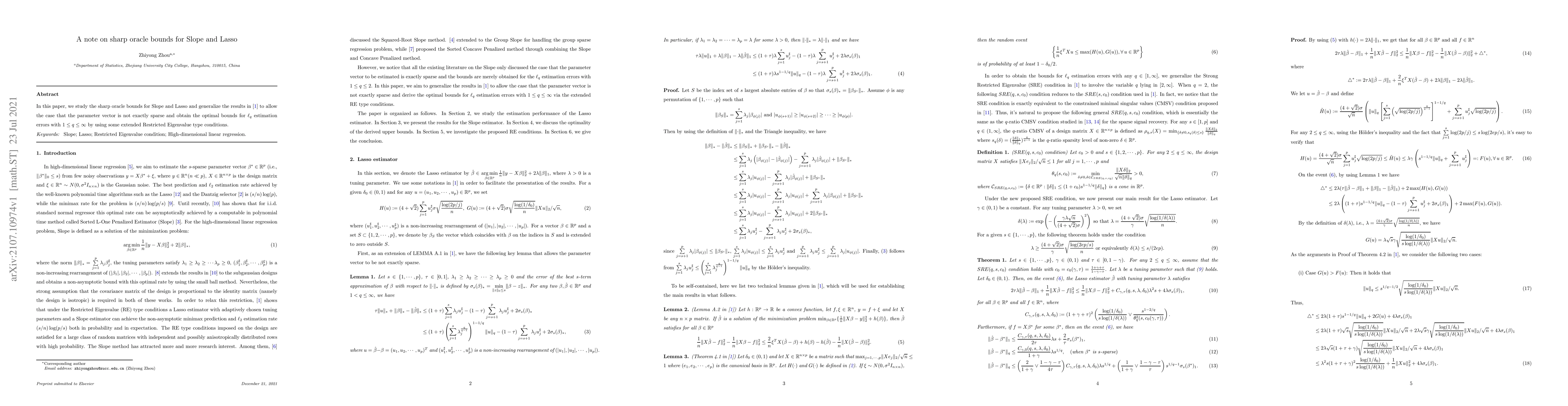 This paper generalizes sharp oracle bounds for Slope and Lasso methods, extending previous results to non-sparse parameter vectors and achieving optimal bounds for $\ell_q$ estimation errors under extended Restricted Eigenvalue conditions.