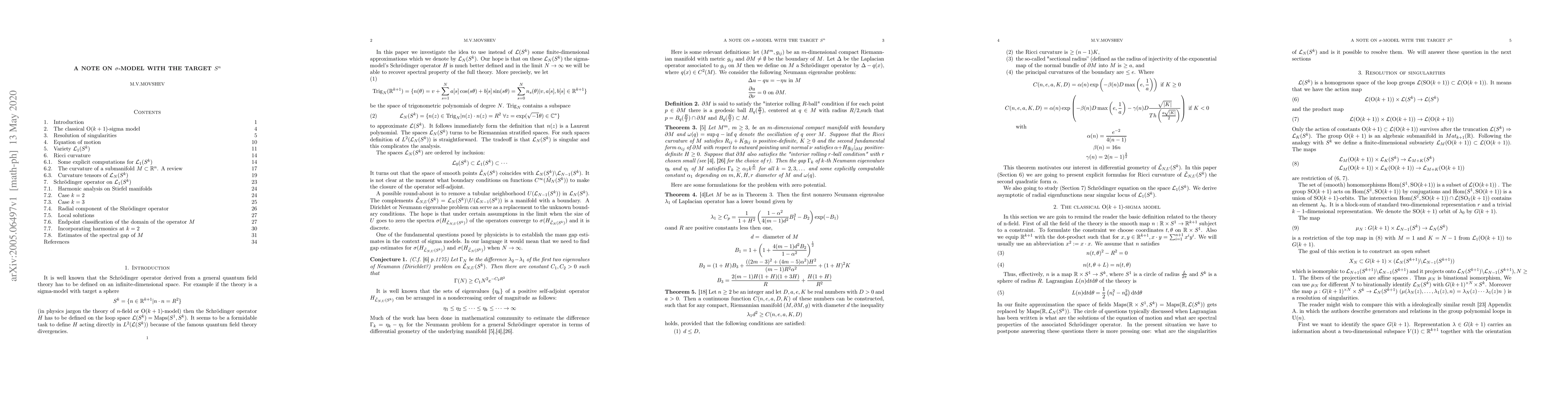 Naively the Hilbert space of a sigma model has to be defined as an L^2 space of functions on the space of free loops of the target. This object is not well defined. In this note we study a finite-dimensional approximations L_N(S^n) of the free loops of the sphere S^n. Spaces L_N(S^n) are defined in terms of finite Fourier series. L_N(S^n) finite-dimensional but singular. We compute Riemann and Ricci curvatures of the smooth locus of this space and study Schr\"odinger operator in the case of L_1(S^n)
