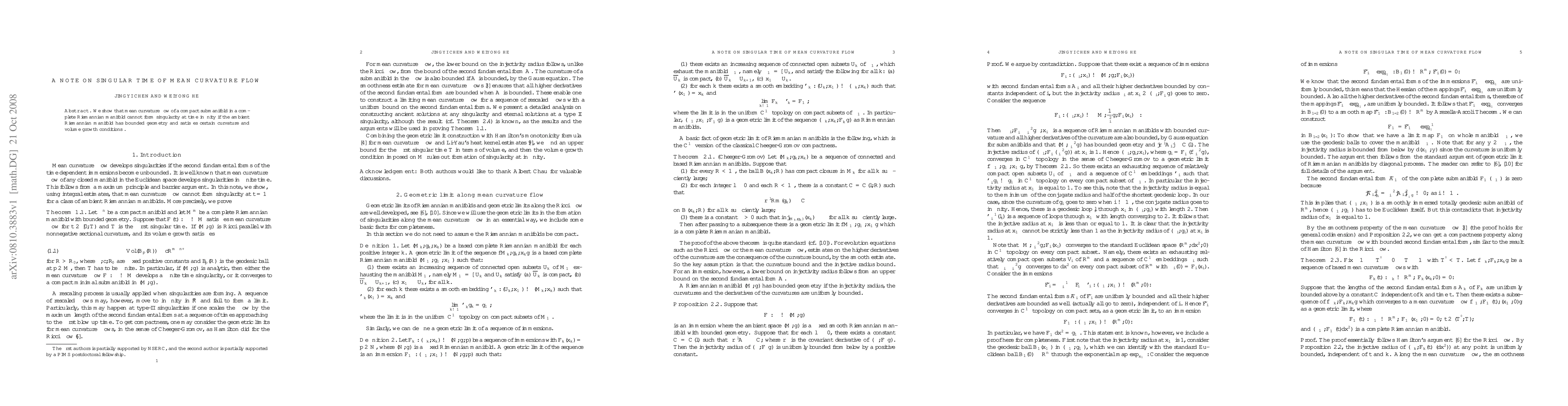 We show that mean curvature flow of a compact submanifold in a complete Riemannian manifold cannot form singularity at time infinity if the ambient Riemannian manifold has bounded geometry and satisfies certain curvature and volume growth conditions .