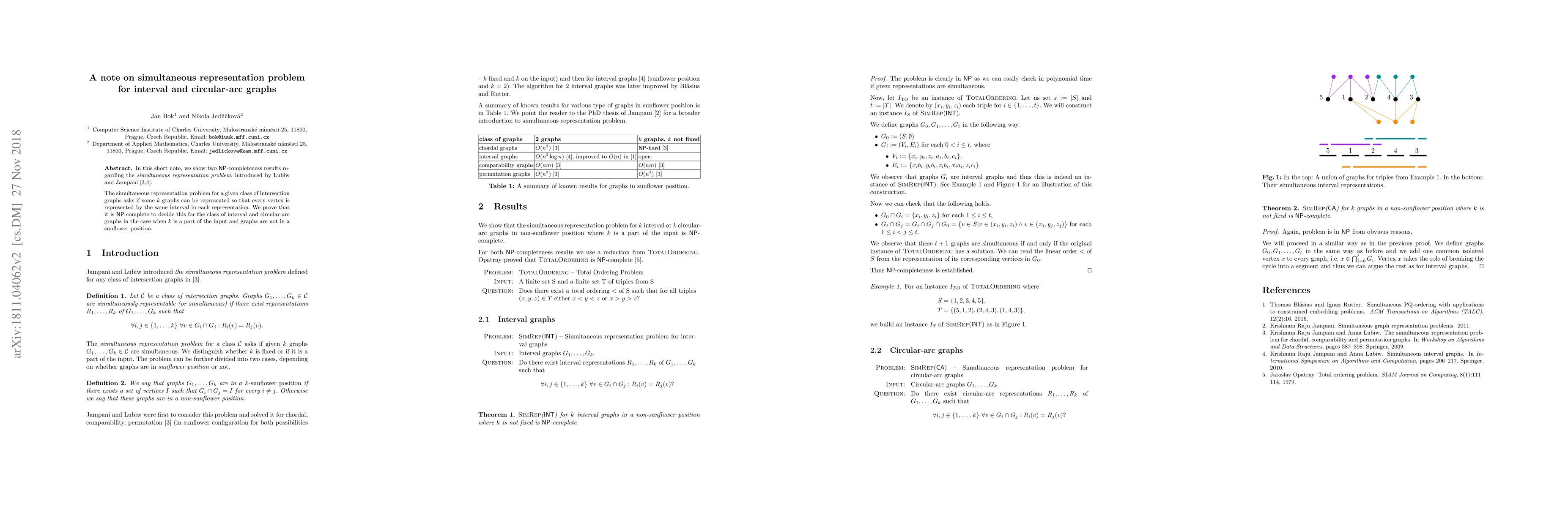 In this short note, we show two NP-completeness results regarding the \emph{simultaneous representation problem}, introduced by Lubiw and Jampani. The simultaneous representation problem for a given class of intersection graphs asks if some $k$ graphs can be represented so that every vertex is represented by the same interval in each representation. We prove that it is NP-complete to decide this for the class of interval and circular-arc graphs in the case when $k$ is a part of the input and graphs are not in a sunflower position.