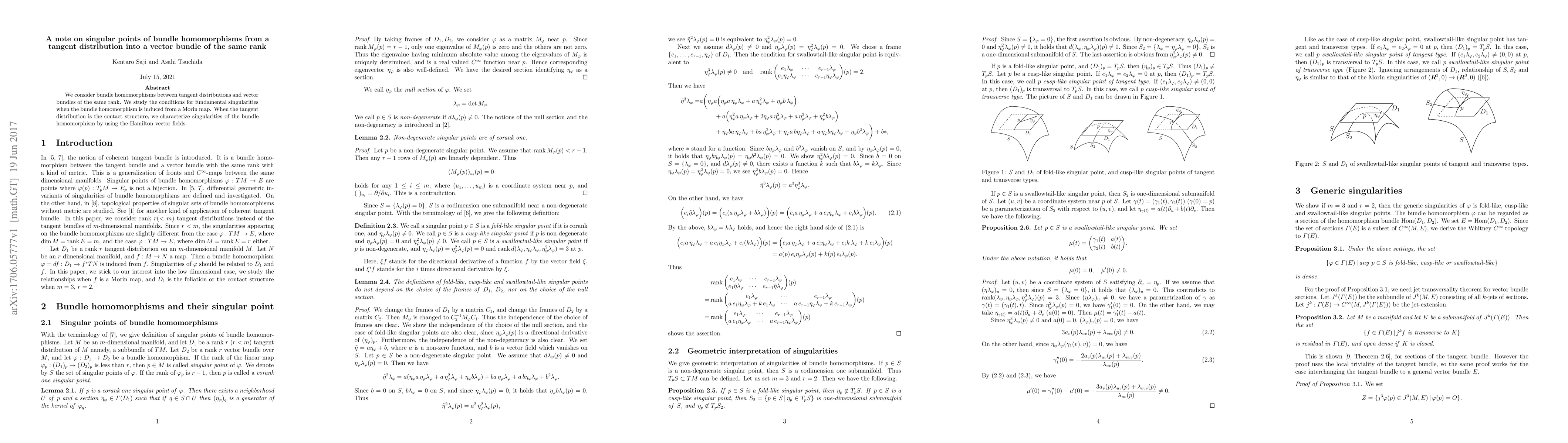 This paper studies conditions for singularities in bundle homomorphisms between tangent distributions and vector bundles of the same rank, using Morin maps and Hamilton vector fields, particularly when the tangent distribution is a contact structure.