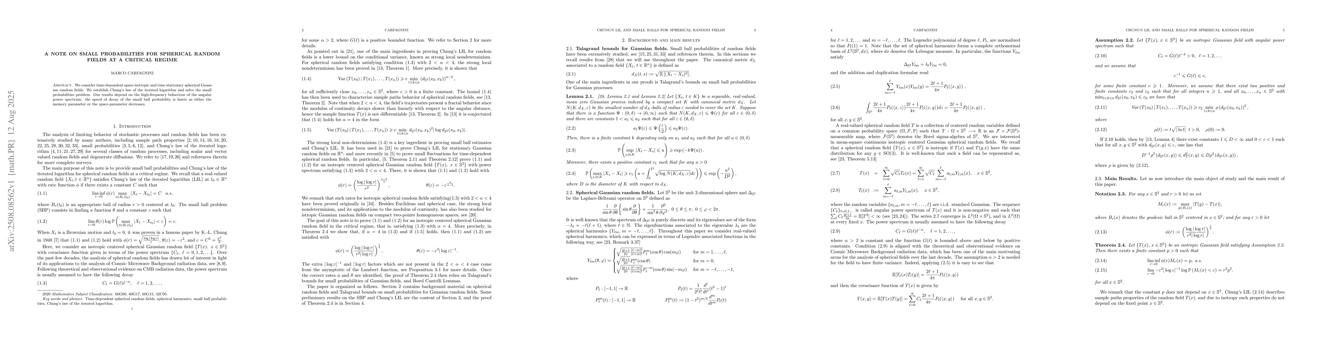 We consider time-dependent space isotropic and time stationary spherical Gaussian random fields. We establish Chung's law of the iterated logarithm and solve the small probabilities problem. Our results depend on the high-frequency behaviour of the angular power spectrum: the speed of decay of the small ball probability is faster as either the memory parameter or the space-parameter decreases.