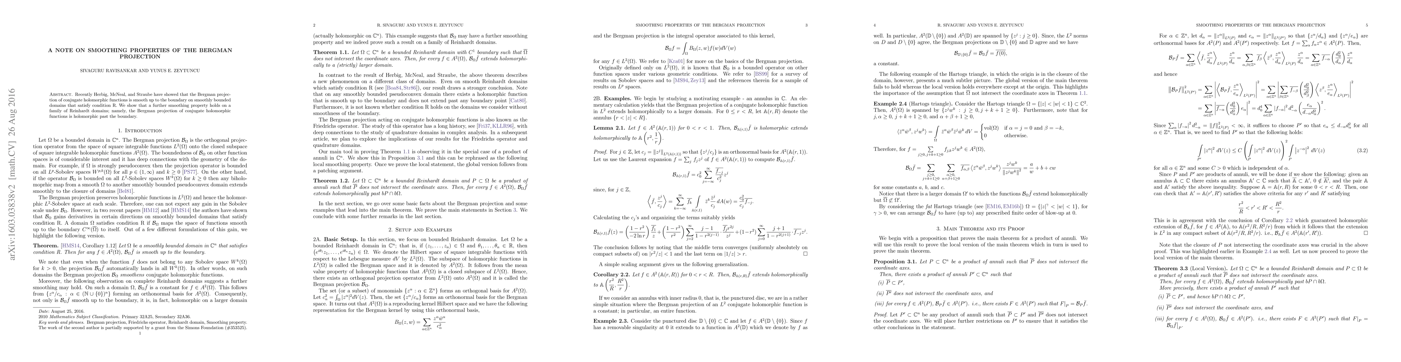 Summary: This paper extends the smoothing properties of the Bergman projection, showing that it is holomorphic beyond the boundary for conjugate holomorphic functions in a family of Reinhardt domains, building on recent findings by Herbig, McNeal, and Straube.