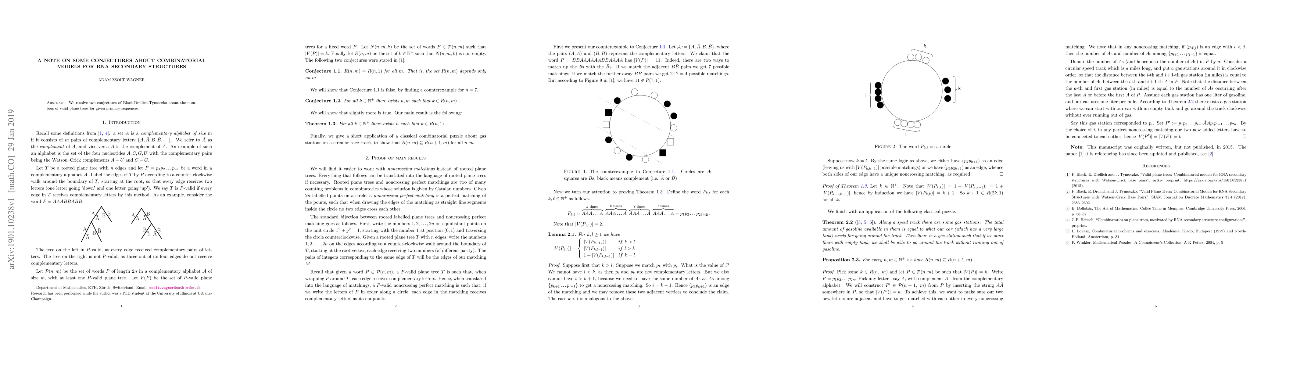This paper resolves two conjectures regarding the enumeration of valid plane trees associated with RNA secondary structures, providing new insights into combinatorial models of these biological molecules. The findings advance understanding in the field of RNA structural bioinformatics.