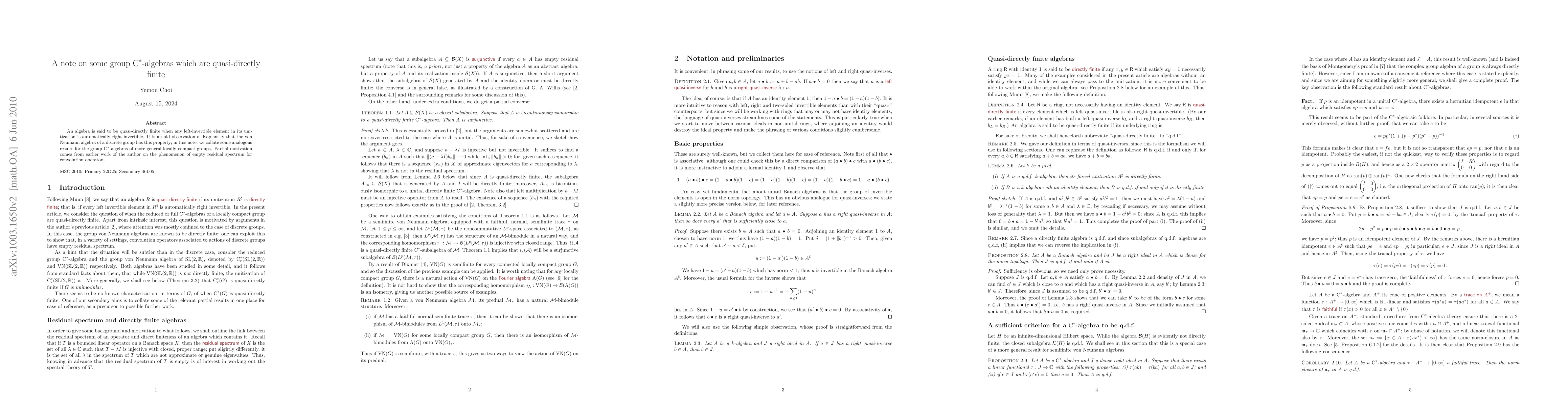 An algebra is said to be quasi-directly finite when any left-invertible element in its unitization is automatically right-invertible. It is an old observation of Kaplansky that the von Neumann algebra of a discrete group has this property; in this note, we collate some analogous results for the group $C^*$-algebras of more general locally compact groups. Partial motivation comes from earlier work of the author on the phenomenon of empty residual spectrum for convolution operators.