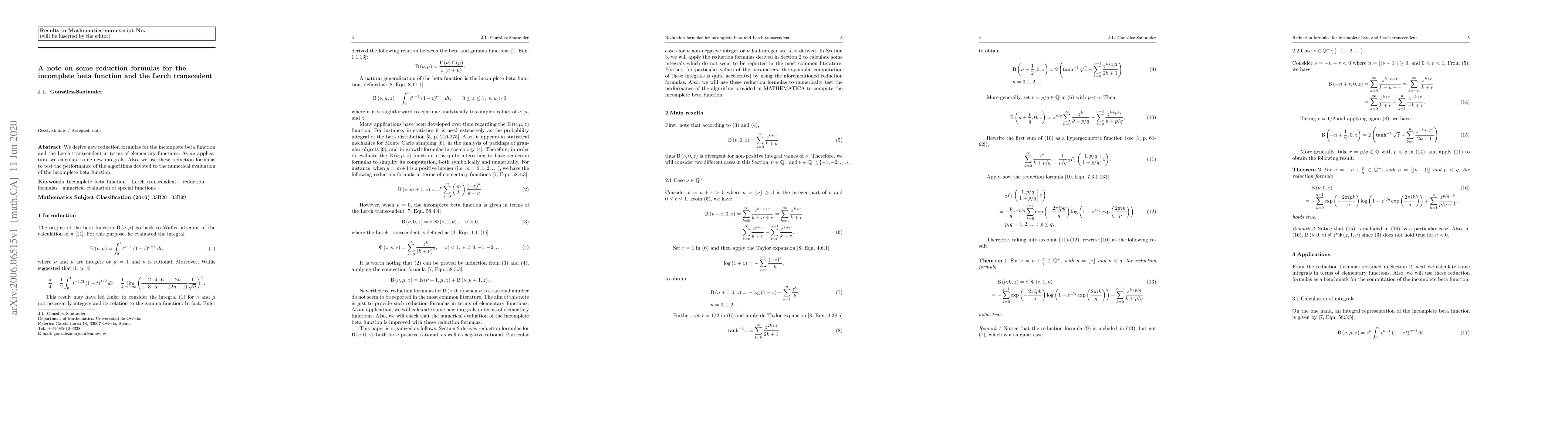 Summary: This paper presents new reduction formulas for the incomplete beta function and the Lerch transcendent, expressed in terms of elementary functions. It also applies these formulas to compute new integrals and evaluates the performance of algorithms for numerically evaluating the incomplete beta function.