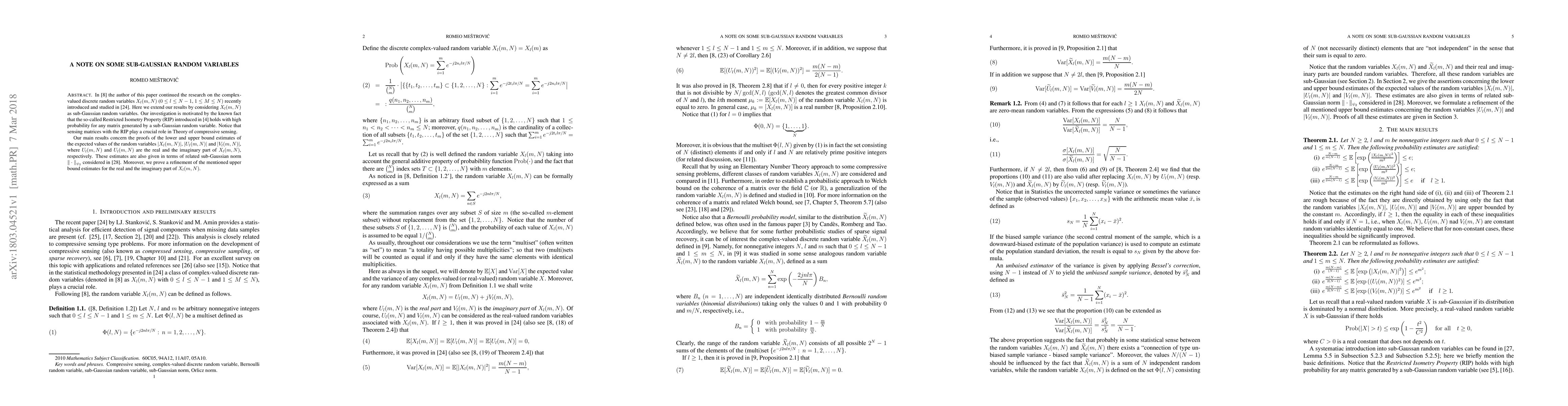 This paper extends previous research on the complex-valued discrete random variables $X_l(m,N)$ by analyzing them as sub-Gaussian random variables, focusing on proving lower and upper bound estimates for their expected values. The study is motivated by the importance of the Restricted Isometry Property in compressive sensing theory.