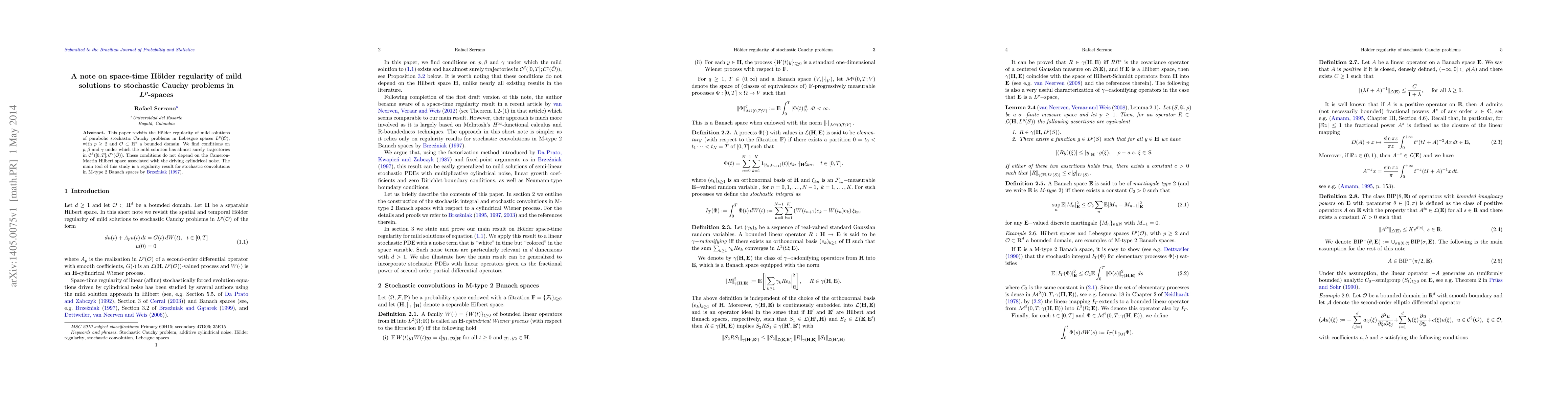 This paper revisits the H\"{o}lder regularity of mild solutions of parabolic stochastic Cauchy problems in Lebesgue spaces $L^p(\mathcal{O}),$ with $p\geq 2$ and $\mathcal{O}\subset\mathbb{R}^d$ a bounded domain. We find conditions on $p, \beta$ and $\gamma$ under which the mild solution has almost surely trajectories in $\mathcal{C}^\beta([0,T];\mathcal{C}^\gamma(\bar{\mathcal{O}})).$ These conditions do not depend on the Cameron-Martin Hilbert space associated with the driving cylindrical noise. The main tool of this study is a regularity result for stochastic convolutions in M-type 2 Banach spaces by Z. Brze\'zniak (Stoch. Stoch. Rep. Vol. 61, Iss. 3-4, 1997).