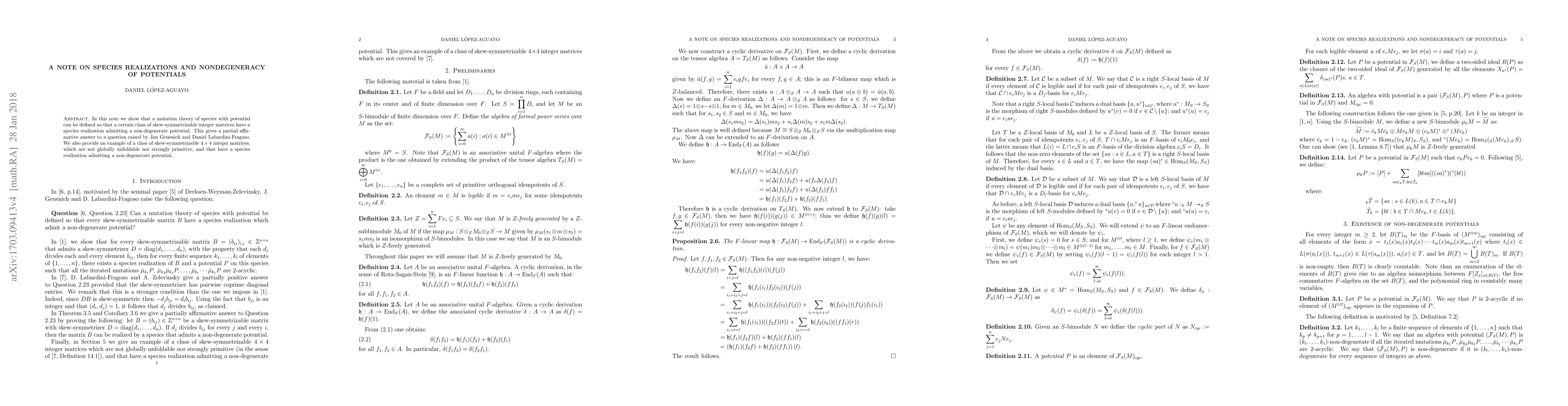 Researchers have identified a class of integer matrices with species realizations that admit non-degenerate potentials, providing a partial affirmative answer to a long-standing question in the field. The study also provides an example of such matrices that are not globally unfoldable or strongly primitive.