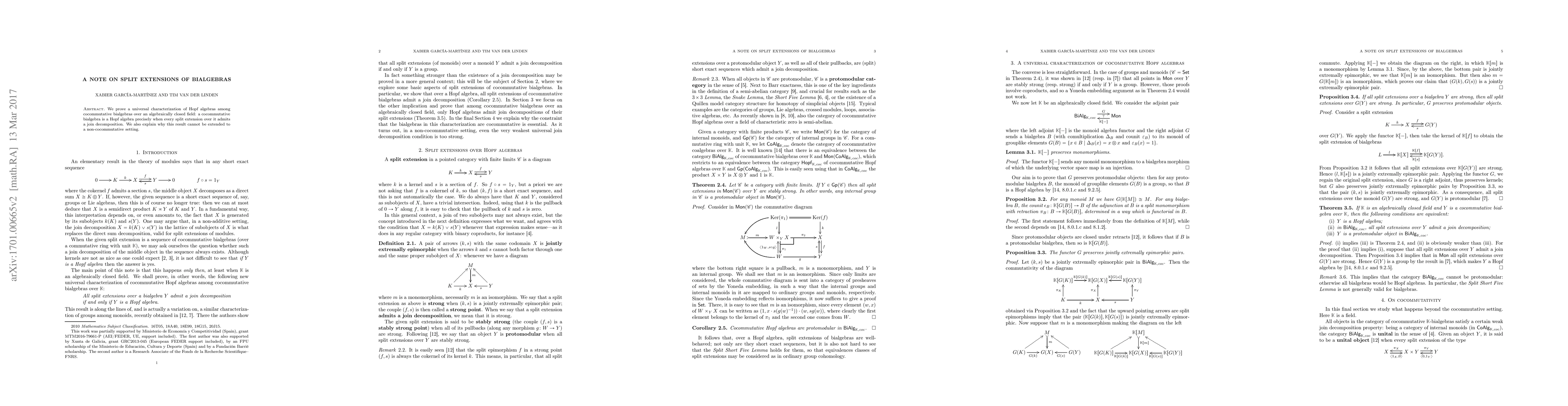 Summary: This paper establishes a universal condition for Hopf algebras within cocommutative bialgebras: they are Hopf algebras if every split extension over them allows a join decomposition. It also clarifies why this condition fails in non-cocommutative settings.