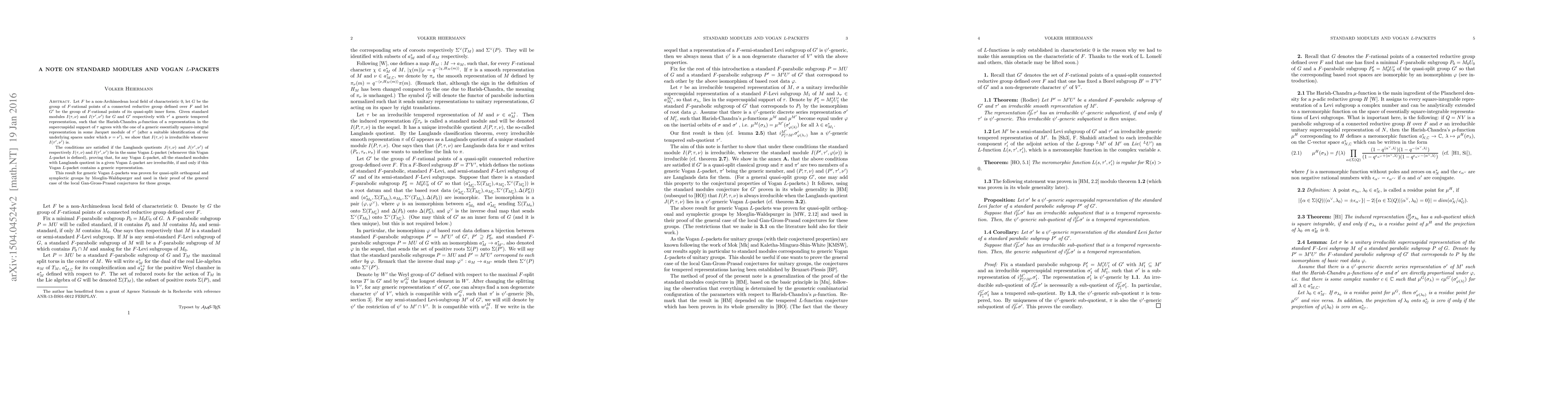 Let $F$ be a non-Archimedean local field of characteristic $0$, let $G$ be the group of $F$-rational points of a connected reductive group defined over $F$ and let $G'$ be the group of $F$-rational points of its quasi-split inner form. Given standard modules $I(\tau ,\nu )$ and $I(\tau ',\nu ')$ for $G$ and $G'$ respectively with $\tau '$ a generic tempered representation, such that the Harish-Chandra's $\mu $-functions of a representation in the supercuspidal support of $\tau $ and of a generic essentially square-integral representation in some Jacquet module of $\tau '$ agree (after a suitable identification of the underlying spaces under which $\nu =\nu '$), we show that $I(\tau ,\nu )$ is irreducible whenever $I(\tau ',\nu ')$ is. The conditions are satisfied if the Langlands quotients $J(\tau ,\nu )$ and $J(\tau ',\nu ')$ of respectively $I(\tau ,\nu )$ and $I(\tau ',\nu ')$ lie in the same Vogan $L$-packet (whenever this Vogan $L$-packet is defined), proving that, for any Vogan $L$-packet, all the standard modules whose Langlands quotient is equal to a member of the Vogan $L$-packet are irreducible, if and only if this Vogan $L$-packet contains a generic representation. The result for generic Vogan $L$-packets of quasi-split orthogonal and symplectic groups was proven by Moeglin-Waldspurger and used in their proof of the general case of the local Gan-Gross-Prasad conjectures for these Groups.